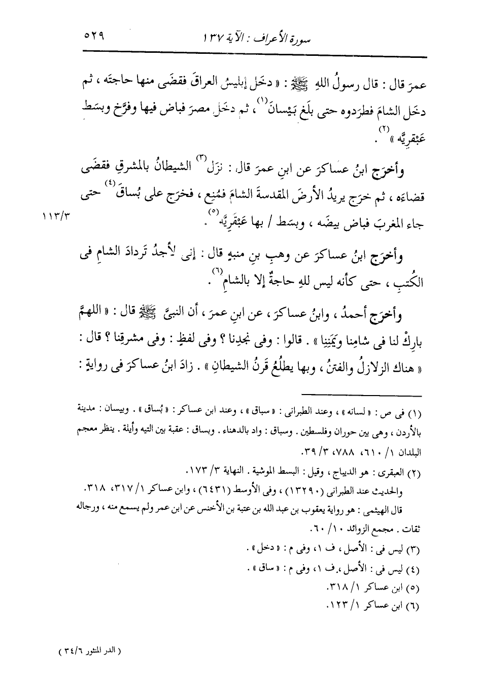 وأخرج ابن عساكر عن ابن عمر قال : دخل الشيطان بالمشرق فقضى قضاءه ثم خرج يريد الأرض المقدسة الشام فمنع فخرج على ساق حتى جاء المغرب فباض بيضه وبسط بها عبقرية.