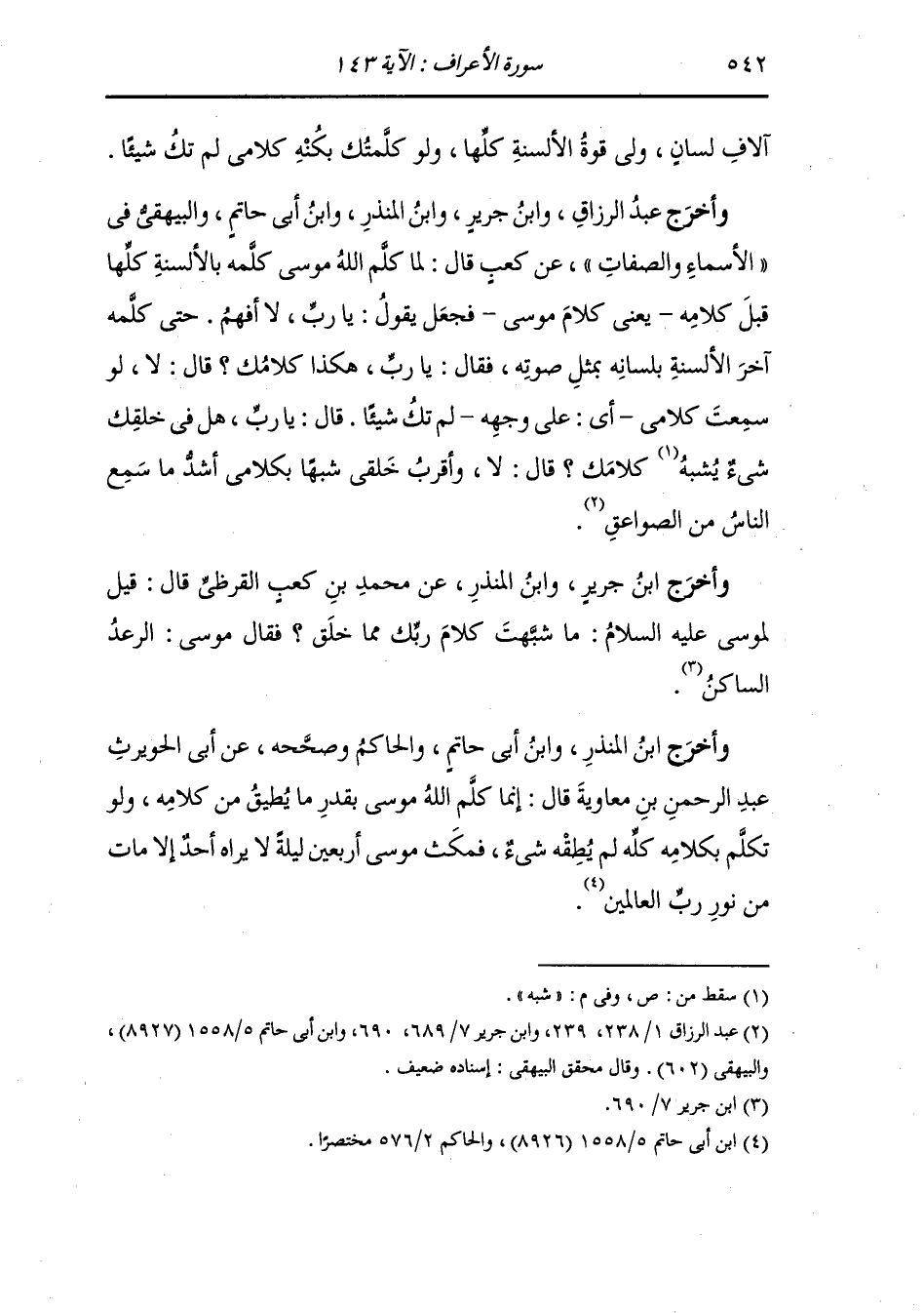 وَأَخرَج ابن المنذر ، وَابن أبي حاتم والحاكم وصححه عن أبي الحويرث عبد الرحمن بن معاوية قال : إنما كلم الله موسى بقدر ما يطيق من كلامه ولو تكلم