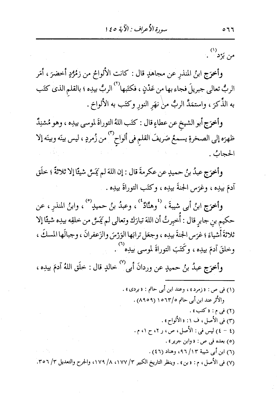 وأخرج عَبد بن حُمَيد عن عكرمة قال : إن الله لم يمش شيئا إلا ثلاثة ، خلق آدم بيده وغرس الجنة بيده وكتب التوراة بيده.
