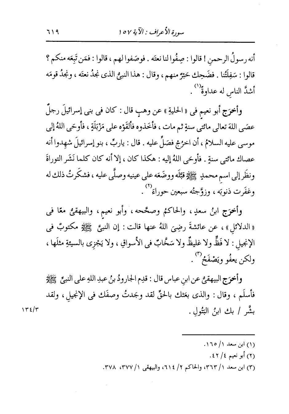 وأخرج ابن سعد والحاكم وصححه وأبو نعيم والبيهقي معا في الدلائل عن عائشة رضي الله عنها قالت : إن النَّبِيّ صلى الله عليه وسلم مكتوب في الإنجيل لا فظ ولا غليظ ولا صخاب في الأسواق ولا يجزي بالسيئة مثلها ولكن يعفو ويصفح.