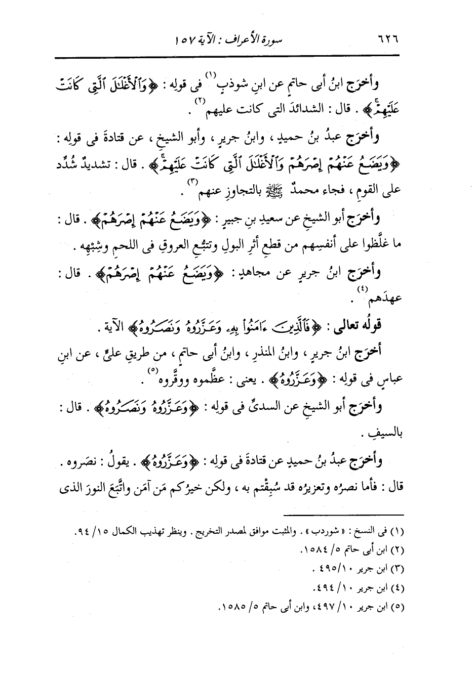 وأخرج ابن أبي حاتم عن ابن شودب في قوله {والأغلال التي كانت عليهم} قال : الشدائد التي كانت عليهم.