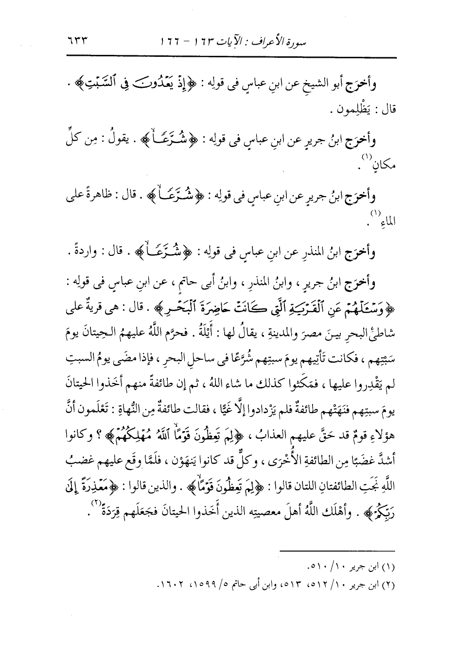 وأخرج ابن جرير عن ابن عباس في قوله {إذ يعدون في السبت} قال : يظلمون.