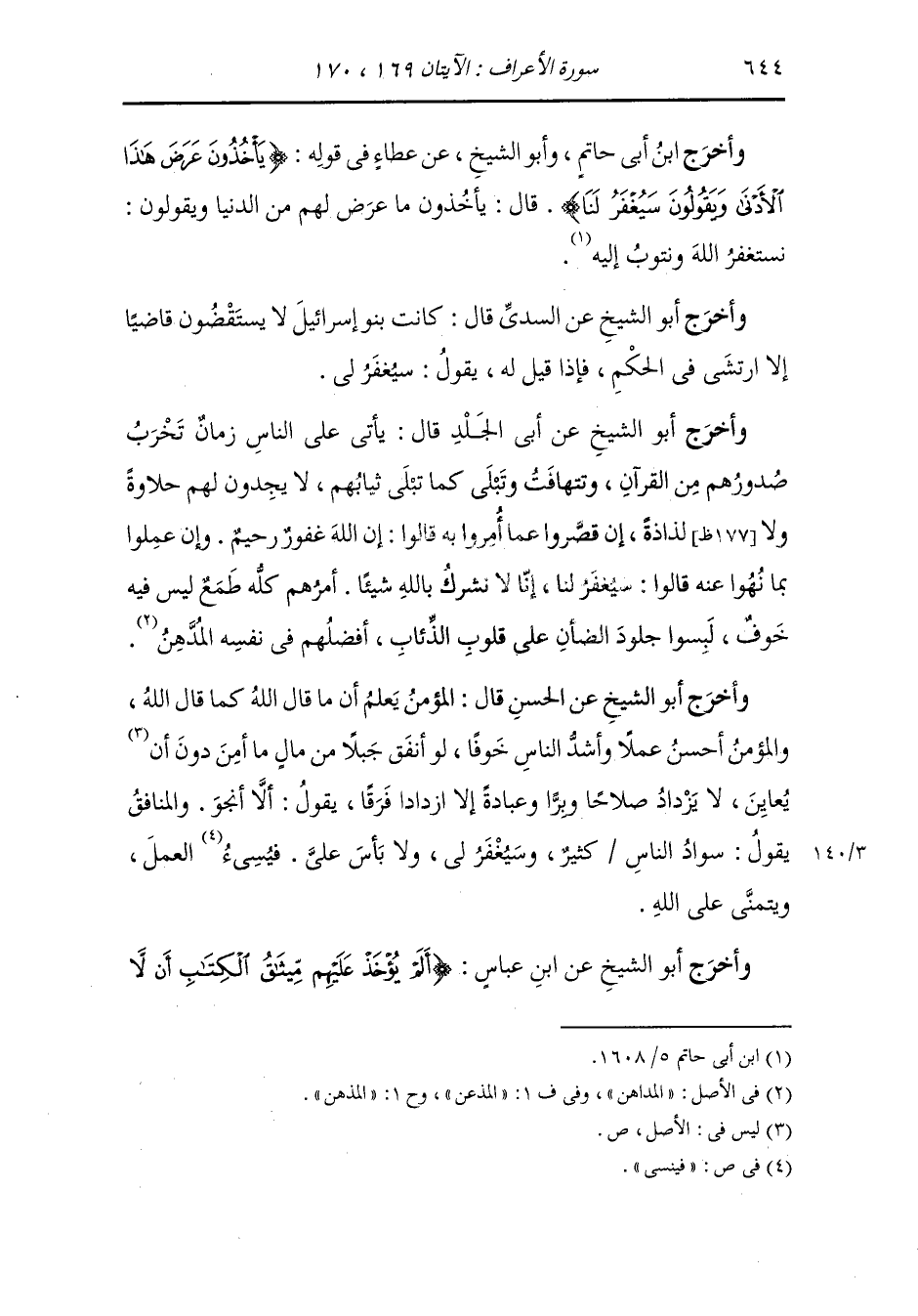 وأخرج ابن أبي حاتم وأبو الشيخ عن عطاء في قوله {يأخذون عرض هذا الأدنى ويقولون سيغفر لنا} قال : يأخذون ما عرض لهم من الدنيا ويقولون : نستغفر الله ونتوب إليه.