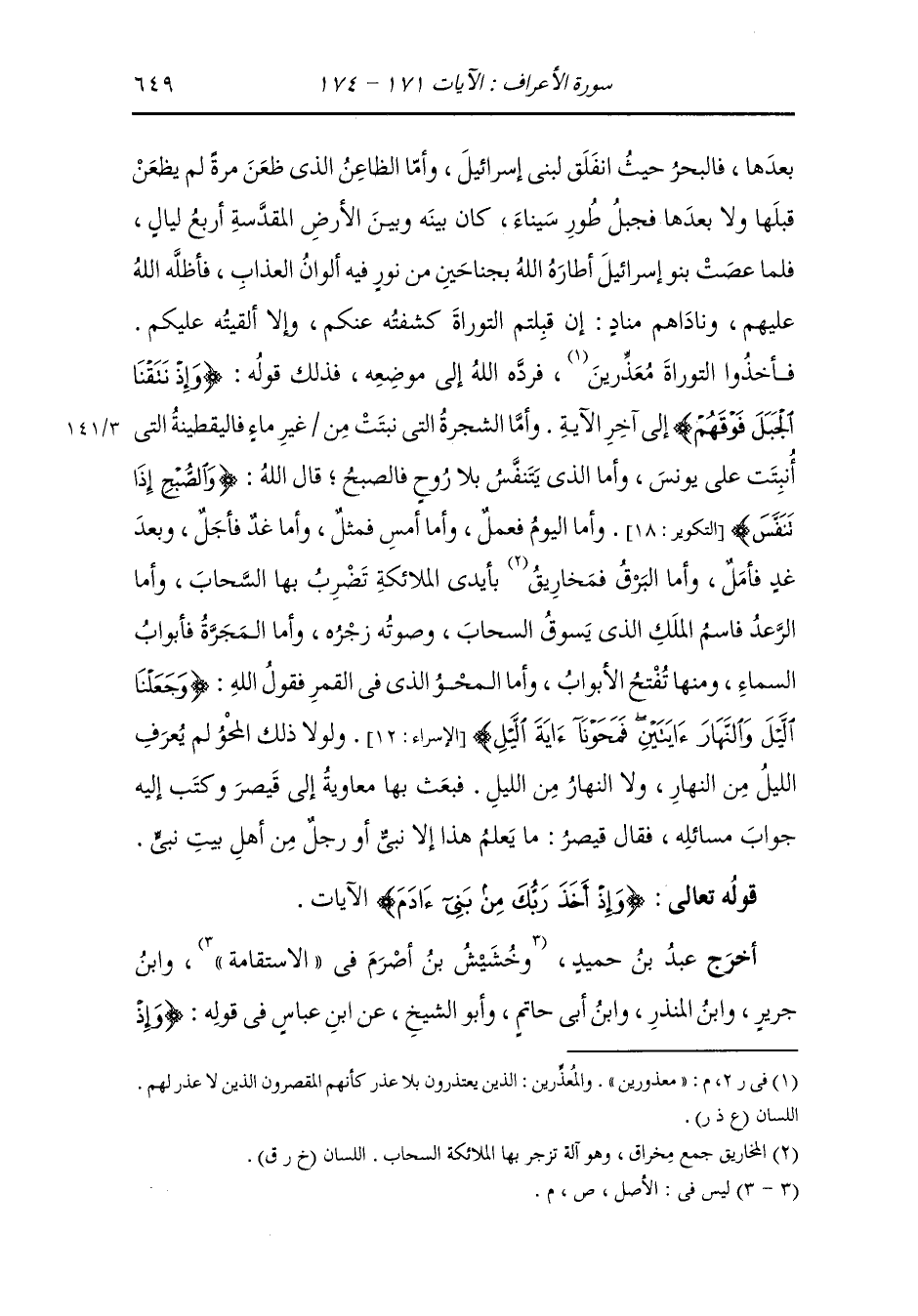 - أَخْرَج عَبد بن حُمَيد ، وَابن جَرِير ، وَابن المنذر ، وَابن أبي حاتم وأبو الشيخ عن ابن عباس في قوله !