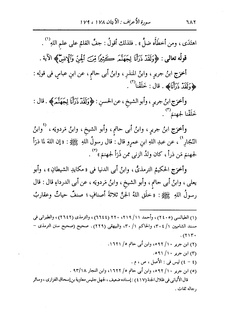 وأخرج ابن جرير ، وَابن أبي حاتم وأبو الشيخ ، وَابن مردويه عن عبد الله بن عمرو قال : قال رسول الله صلى الله عليه وسلم إن الله لما ذرأ لجهنم من ذرأ كان ولد الزنا ممن ذرأ لجهنم.