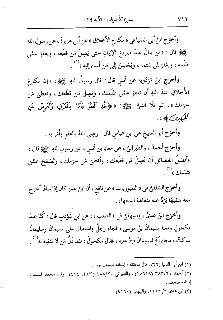 وأخرج ابن أبي الدنيا في مكارم الأخلاق عن أبي هريرة عن رسول الله صلى الله عليه وسلم قال لن ينال عبد صريح الإيمان حتى يصل من قطعه ويعفو عمن ظلمه ويغفر لمن شتمه ويحسن إلى من أساء إليه.
