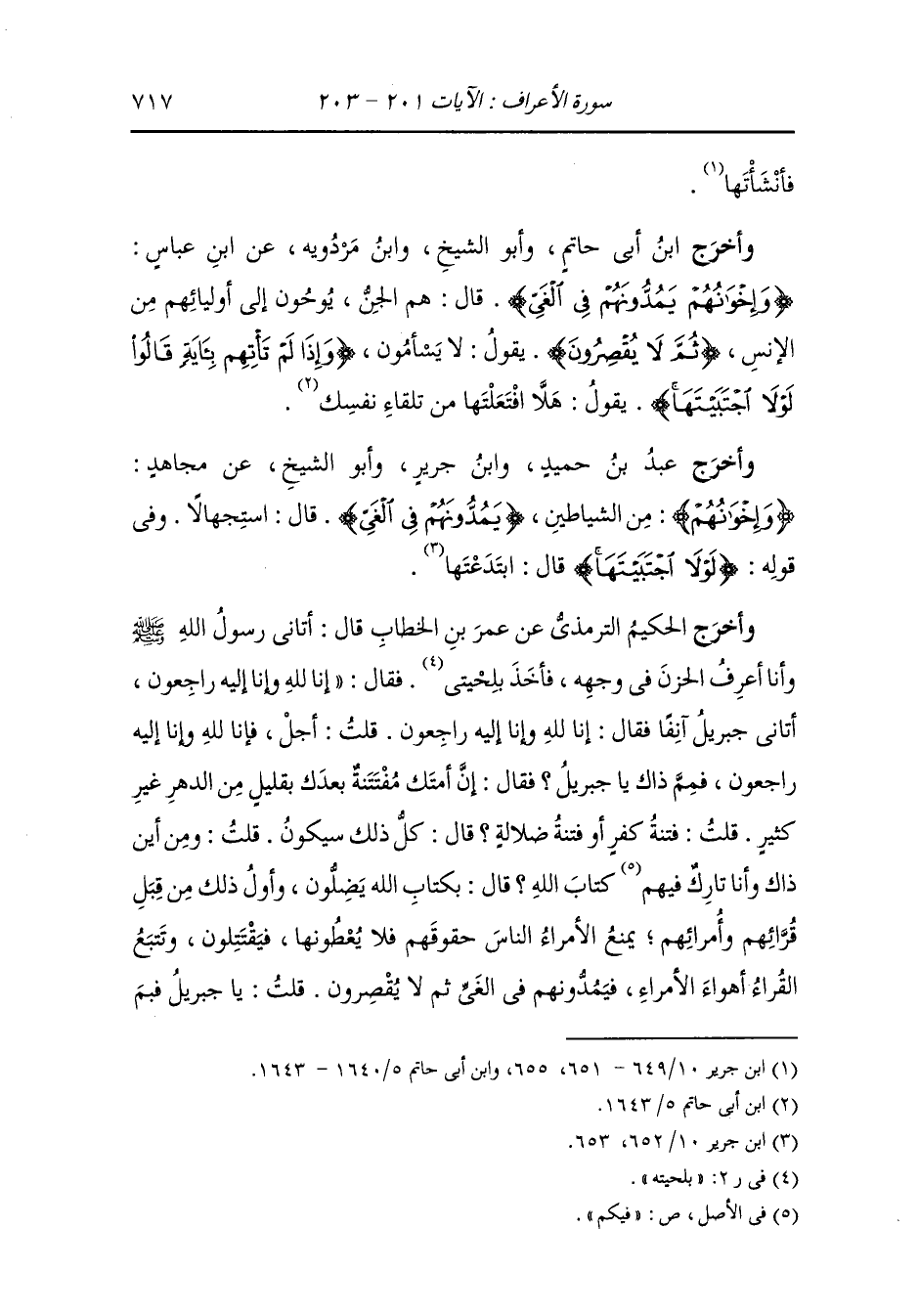 وأخرج عَبد بن حُمَيد ، وَابن جَرِير وأبو الشيخ عن مجاهد ? {وإخوانهم من الشياطين يمدونهم في الغي > ? قال : استجهالا وفي قوله {لولا اجتبيتها} قال : ابتدعتها.