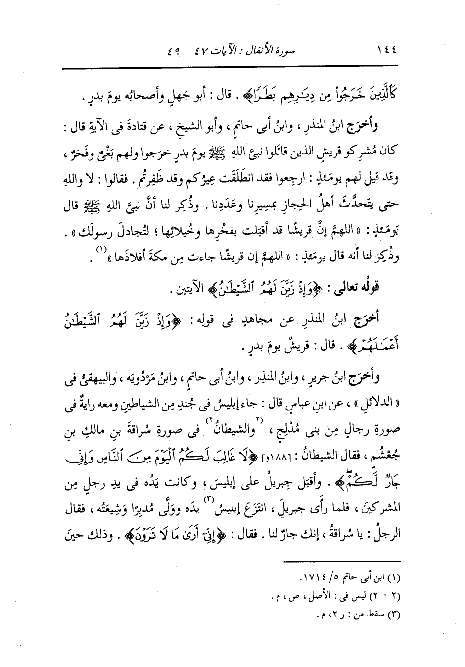 أخرج ابن أبي حاتم ، وَابن مردويه عن ابن عباس رضي الله عنهما في قوله {ولا تكونوا كالذين خرجوا من ديارهم بطرا ورئاء الناس} يعني المشركين الذين قاتلوا رسول الله صلى الله عليه وسلم يوم بدر.
