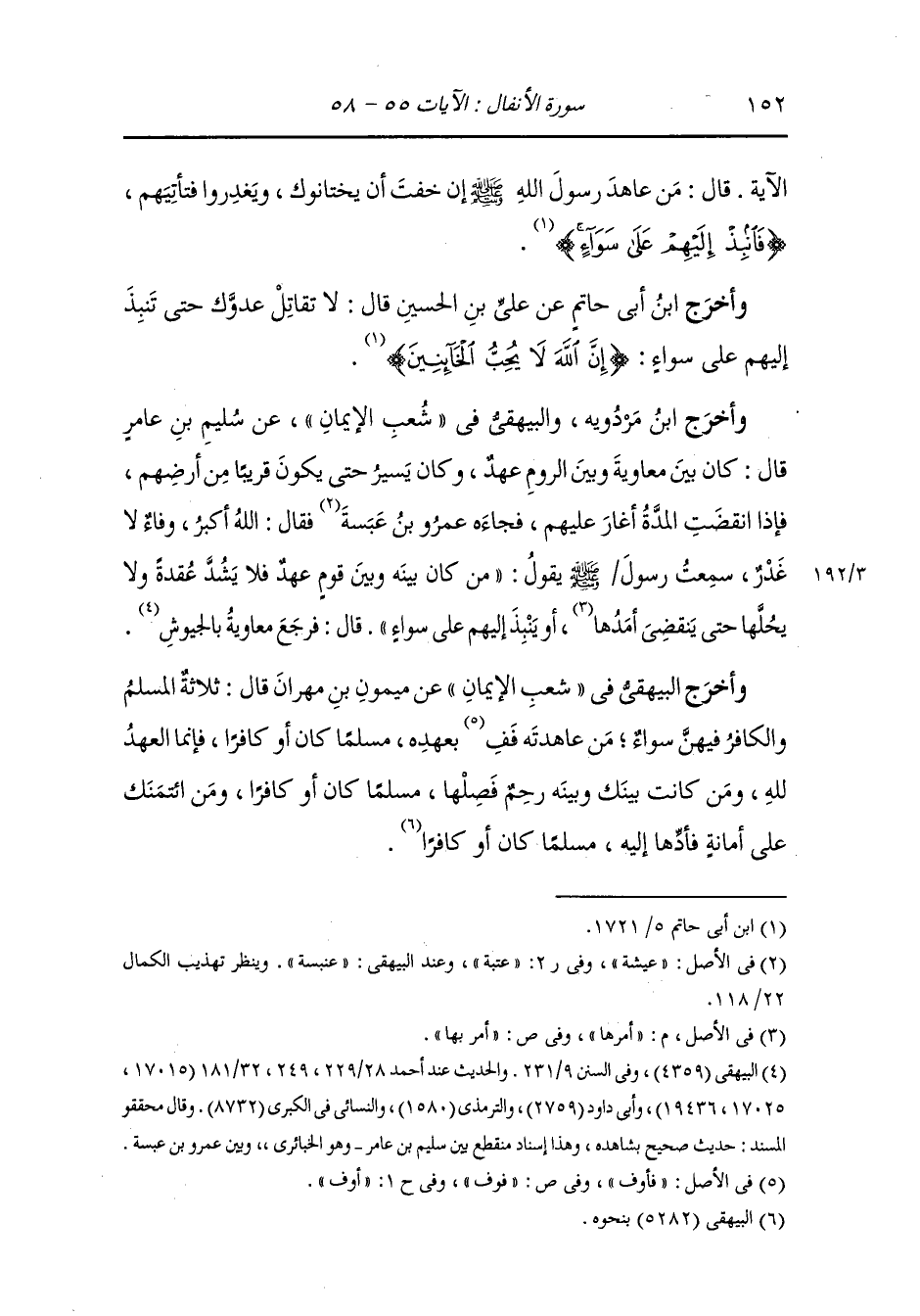 وأخرج ابن أبي حاتم عن ابن زيد رضي الله عنه في قوله {وإما تخافن من قوم خيانة} الآية