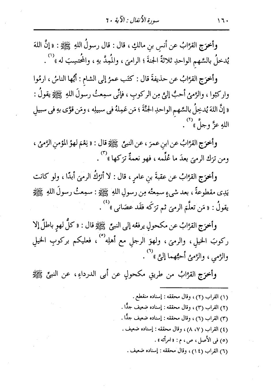 وأخرج أبو عبيدة في كتاب الخيل عن أبي الشعثاء جابر بن يزيد رضي الله عنه أن رسول الله صلى الله عليه وسلم قال : ارموا واركبوا الخيل وأن ترموا أحب إلي كل لهو لها بة المؤمن باطل إلا ثلاث خلال ، رميك عن قوسك وتأديبك فرسك وملاعبتك أهلك فإنهن من الحق.