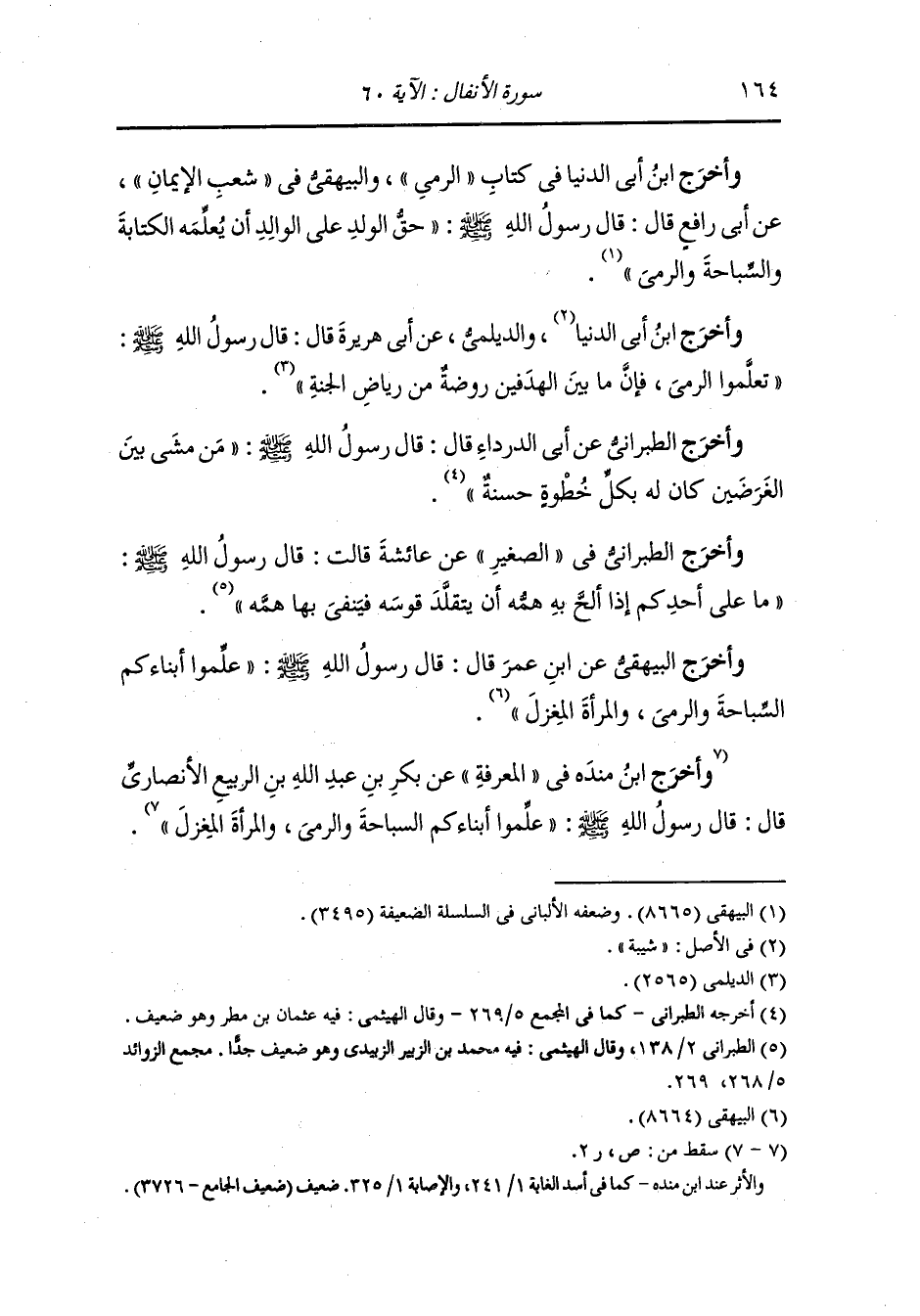 وأخرج الطبراني في الأوسط عن عمر بن الخطاب رضي الله عنه قال : قال رسول الله صلى الله عليه وسلم كل لهو يكره إلا ملاعبة الرجل امرأته ومشيه بين الهدفين وتعليمه فرسه