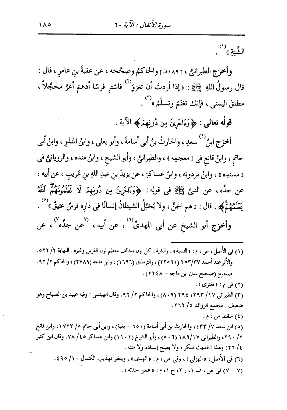 وأخرج ابن عرفة عن نافع بن جبير رضي الله عنه عن النَّبِيّ صلى الله عليه وسلم قال اليمن في الخيل في كل أحوى أحم.