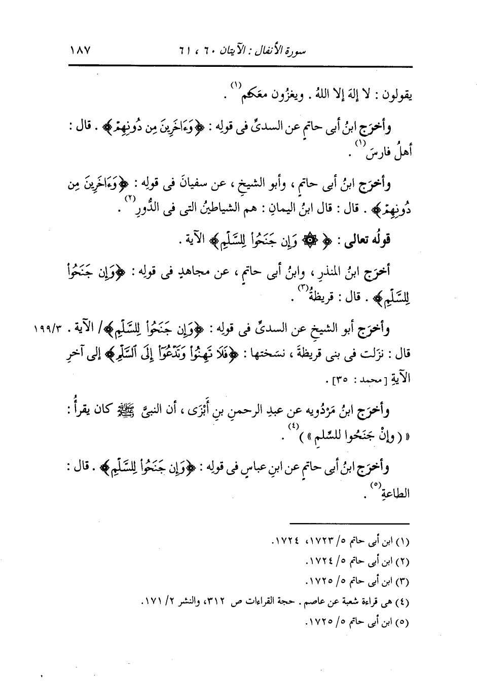 وأخرج أبو الشيخ ، وَابن مردويه عن ابن عباس رضي الله عنهما في قوله {وآخرين من دونهم} يعني الشيطان لا يستطيع ناصية فرس لأن النَّبِيّ صلى الله عليه وسلم قال الخيل معقود في نواصيها الخير فلا يستطيعه شيطان أبدا.