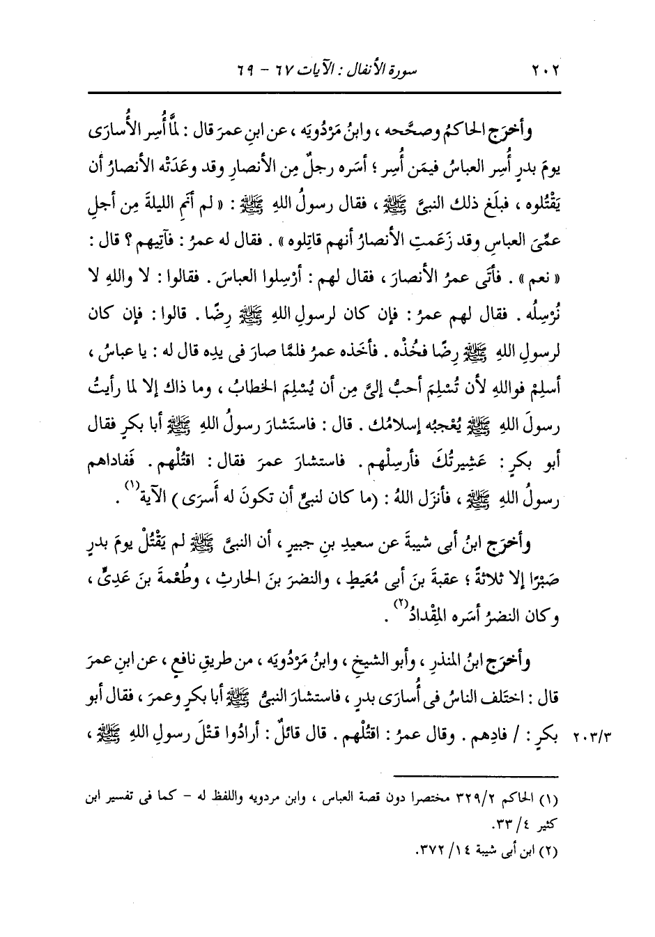 وأخرج أبو نعيم في الحلية من طريق مجاهد رضي الله عنه عن ابن عمر رضي الله عنهما أن النَّبِيّ صلى الله عليه وسلم لما أشار أبو بكر رضي الله عنه فقال : قومك وعشيرتك فخل سبيلهم فاستشار عمر رضي الله عنه فقال : اقتلهم ، ففاداهم رسول الله فأنزل الله {ما كان لنبي أن يكون له أسرى} الآية ، فلقي رسول الله صلى الله عليه وسلم عمر رضي الله عنه فقال : كاد أن يصيبنا في خلافك شرا