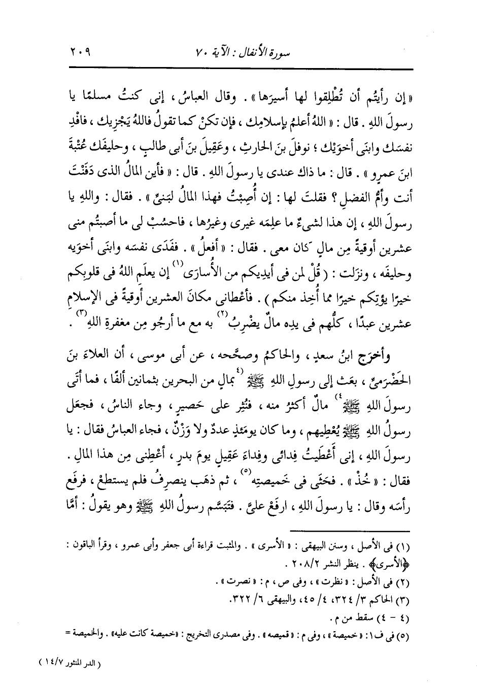 وأخرج الخطيب في المتفق والمفترق عن ابن عباس رضي الله عنهما لما رغبوا في الفداء أنزلت {ما كان لنبي} إلى قوله {لولا كتاب من الله سبق} الآية ، قال : سبق من الله رحمته لمن شهد بدرا فتجاوز الله عنهم وأحلها لهم.