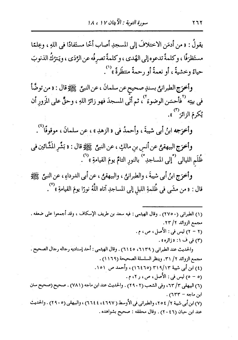وأخرج البيهقي عن عبد الله بن سلام رضي الله عنه قال : إن للمساجد أوتادا هم عمارها وإن لهم جلساء من الملائكة تفتقدهم الملائكة إذا غابوا فإن كانوا مرضى عادوهم وإن كانوا في حاجة أعانوهم.