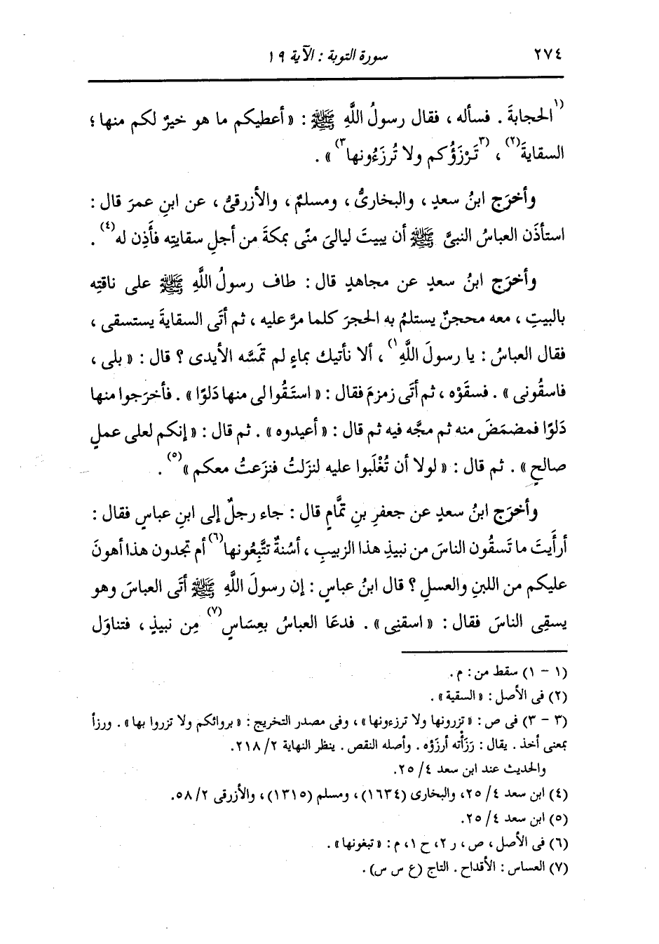 وأخرج ابن أبي شيبة وأبو الشيخ عن عبد الله بن السائب رضي الله عنه قال : اشرب من سقاية العباس فإنها من السنة ، وفي لفظ ابن أبي شيبة : فإنه من تمام الحج.