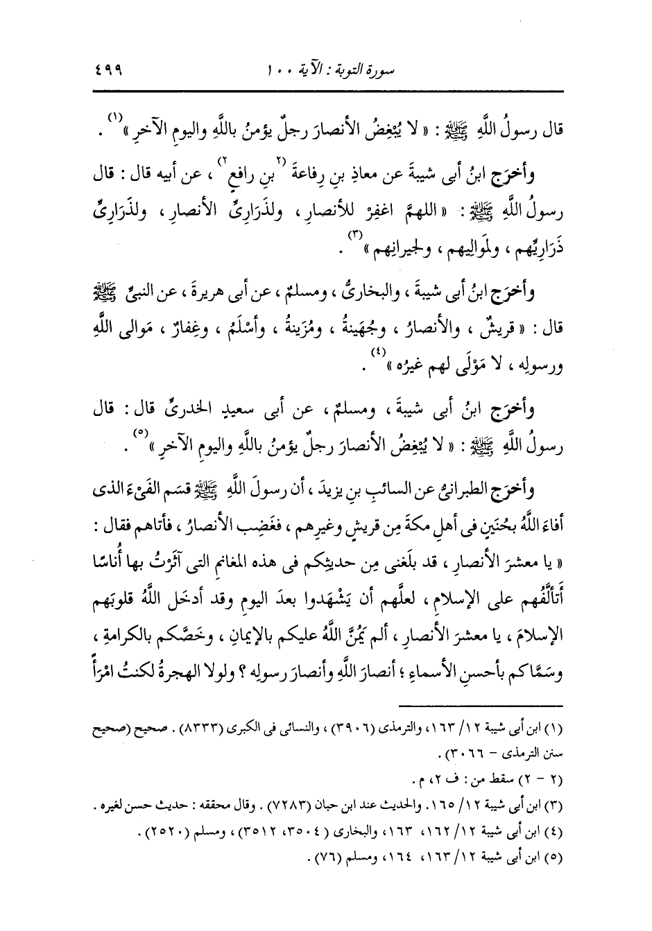 وأخرج ابن أبي شيبة ومسلم عن أبي سعيد الخدري رضي الله عنه قال : قال رسول الله صلى الله عليه وسلم لا يبغض الأنصار رجل يؤمن بالله واليوم الآخر.