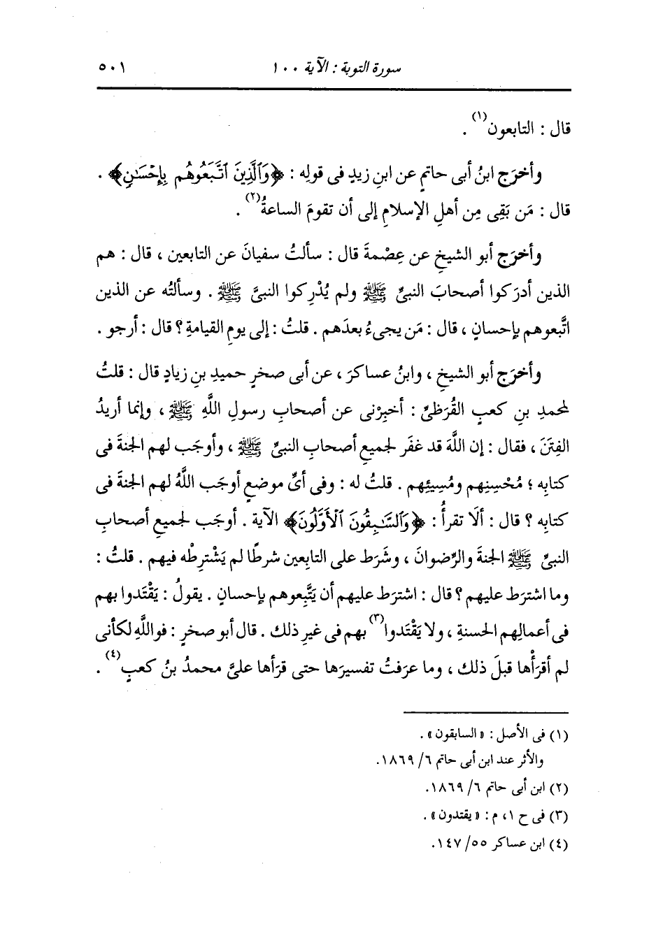 وأخرج عن ابن زيد في قوله {والذين اتبعوهم بإحسان} قال : من بقي من اهل الإسلام إلى أن تقوم الساعة.