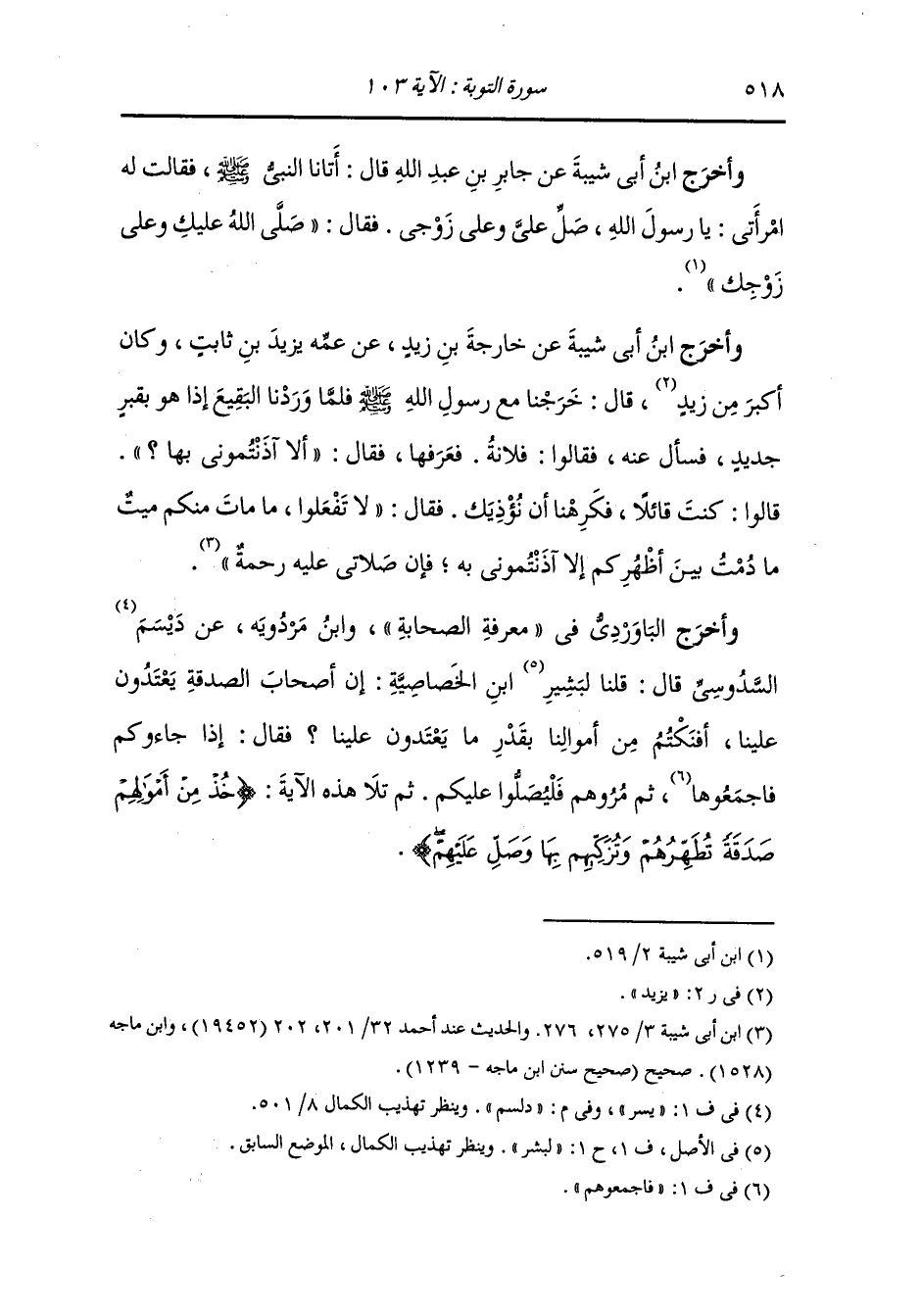 وأخرج الباوردي في معرفة الصحابة ، وَابن مردويه عن دلسم السدوسي قال : قلنا لبشير بن الخصاصية : إن أصحاب الصدقة يعتدون علينا أفنكنتم من أموالنا بقدر ما يعتدون علينا فقال : إذا جاؤوكم فاجمعوها ثم مروهم فليصلوا عليكم ثم تلا هذه الآية {خذ من أموالهم صدقة تطهرهم وتزكيهم بها وصل عليهم}