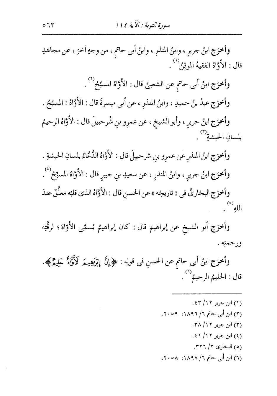وأخرج ابن أبي حاتم عن الحسن في قوله {إن إبراهيم لأواه حليم} قال : الحليم الرحيم