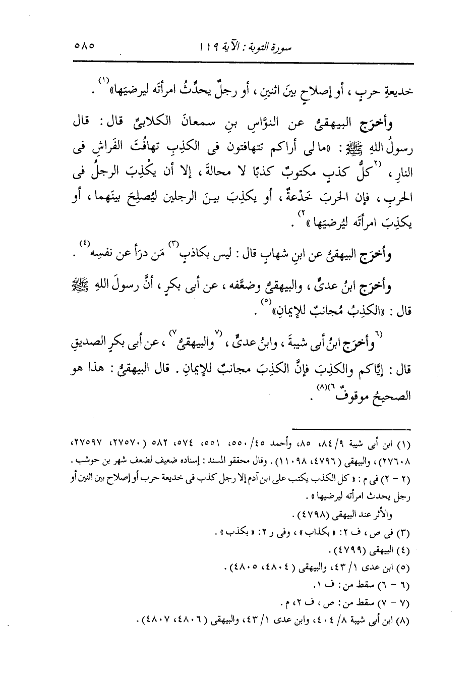 وأخرج البيهقي عن ابن شهاب قال : ليس بكذاب من درأ عن نفسه.