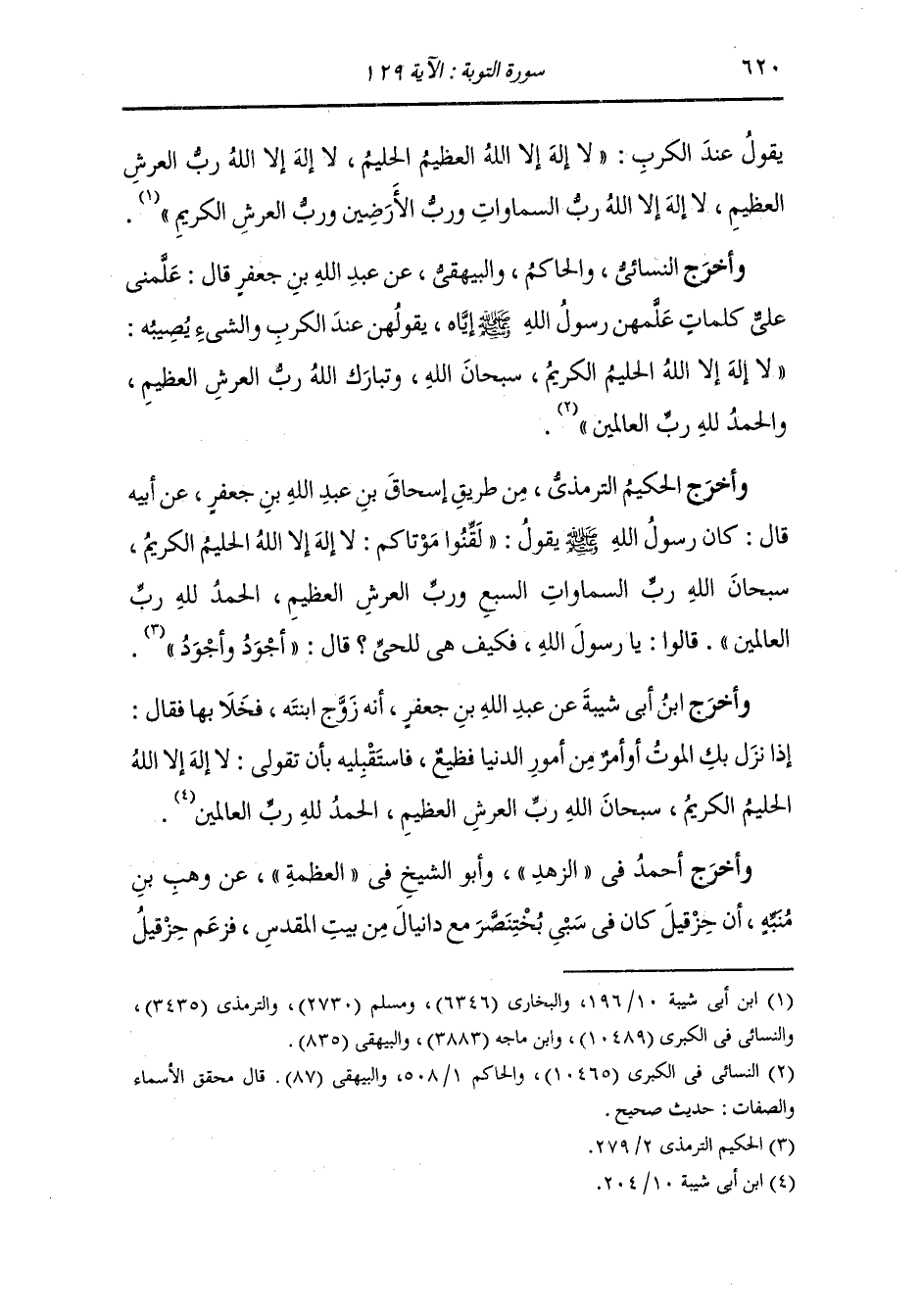 أنه كان نائما على شأطئ الفرات فأتاه ملك وهو نائم فأخذ برأسه فاحتمله حتى وضعه في خزانة بيت المقدس قال : فرفعت رأسي إلى السماء فإذا السموات منفرجات دون العرش قال : فبدا لي العرش ومن حوله فنظرت إليهم من تلك الفرجة فإذا العرش - إذا نظرت إليه - مظل على السموات والأرض وإذا نظرت إلى السموات والأرض رأيتهن متعلقات ببطن العرش وإذا الحملة أربعة من الملائكة لكل ملك منهم أربعة وجوه وجه إنسان ووجه نسر ووجه أسد ووجه ثور فلما أعجبني ذلك منهم نظرت إلى أقدامهم فإذا هي في الأرض على عجل تدور بها وإذا ملك قائم بين يدي العرش له ستة أجنحة لها لون كلون فرع لم يزل ذلك مقامه منذ خلق الله الخلق إلى أن تقوم الساعة فإذا هو جبريل عليه السلام وإذا ملك أسفل من ذلك أعظم شيء رأيته من الخلق فإذا هو ميكائيل وهو خليفة على ملائكة السماء وإذا ملائكة يطوفون بالعرش منذ خلق الله الخلق إلى أن تقوم الساعة يقولون : قدوس قدوس ربنا الله القوي ملأت عظمته السموات والأرض وإذا ملائكة أسفل من ذلك لكل ملك منهم ستة أجنحة جناحان يستر بهما وجهه من النور وجناحان يغطي بهما جسده وجناحان يطير بهما ، وإذا هم الملائكة المقربون وإذا ملائكة أسفل من ذلك سجود مذ خلق الله الخلق إلى أن ينفخ في الصور فإذا نفخ في الصور رفعوا رؤوسهم فإذا نظروا إلى العرش قالوا : سبحانك ما كنا نقدرك حق قدرتك ثم رأيت العرش