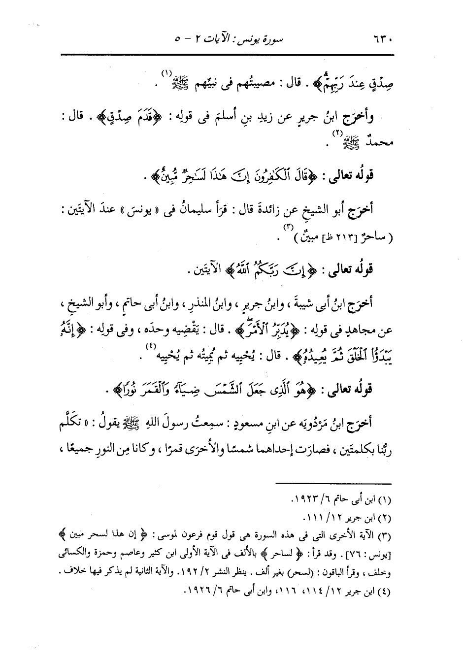 وأخرج ابن أبي حاتم وأبو الشيخ عن السدي في قوله {جعل الشمس ضياء والقمر نورا} قال : لم يجعل الشمس كهيئة القمر كي يعرف الليل من النهار وهو قوله (فمحونا آية الليل) (الإسراء الآية 12) الآية.
