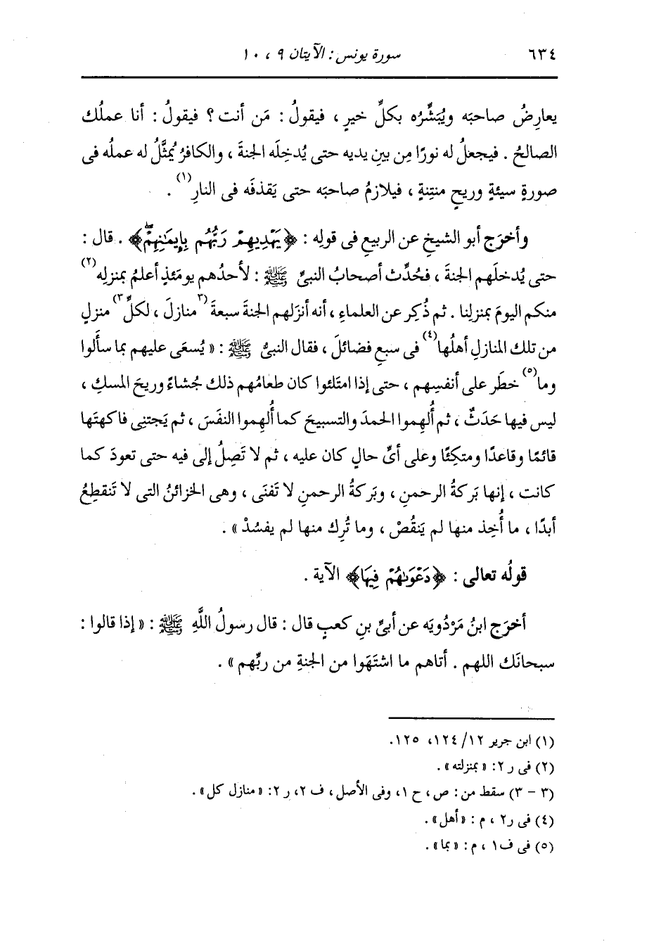 وأخرج ابن أبي حاتم عن الربيع قال : أهل الجنة إذا اشتهوا شيئا قالوا : سبحانك اللهم وبحمدك ، فإذا هو عندهم فذلك قوله {دعواهم فيها سبحانك اللهم}.