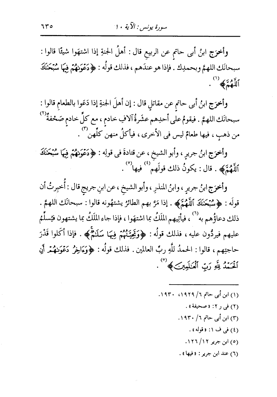 وأخرج ابن أبي حاتم وأبو الشيخ عن ابن أبي الهذيل قال : الحمد أول الكلام وآخر الكلام ثم تلا {وآخر دعواهم أن الحمد لله رب العالمين}.