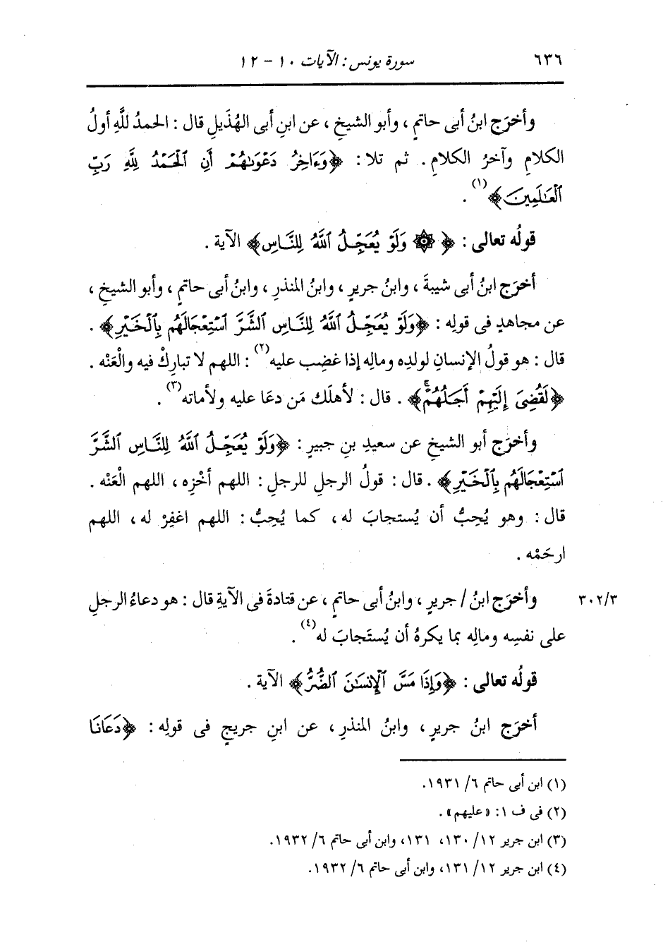 أَخْرَج ابن جرير ، وَابن المنذر ، وَابن أبي حاتم وأبو الشيخ عن قتادة في قوله {وإذا تتلى عليهم آياتنا بينات} قال : لا يرجون لقاءنا ، إيت