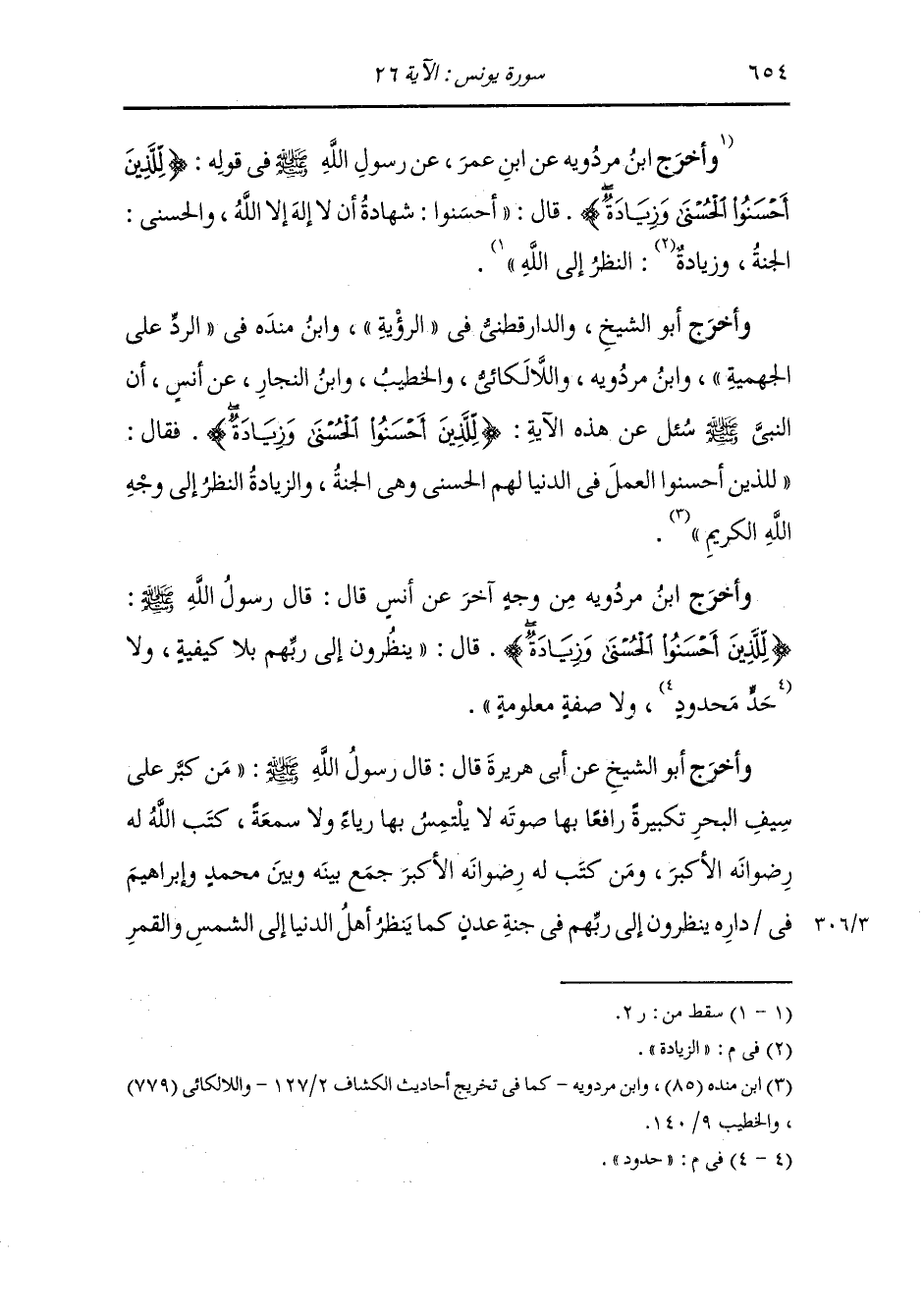 وأخرج ابن مردويه من طريق الحرث عن علي رضي الله عنه في قوله {للذين أحسنوا الحسنى} قال : يعني الجنة والزيادة يعني النظر إلى الله تعالى.
