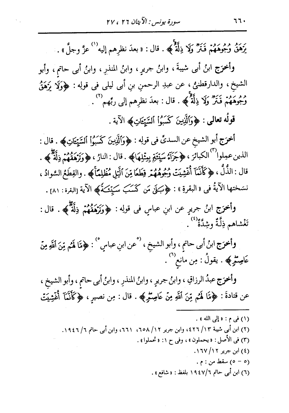 وأخرج ابن أبي شيبة ، وَابن المنذر ، وَابن أبي حاتم وأبو الشيخ عن مجاهد رضي الله عنه قال : يأتي على الناس يوم القيامة ساعة فيها لين يرى أهل الشرك أهل التوحيد يغفر لهم فيقولون (والله ربنا ما كنا مشركين) (الأنعام الآية 23) قال الله (أنظر كيف كذبوا على أنفسهم وضل عنهم ما كانوا يفترون) (الأنعام الآية 24) ثم يكون من بعد ذلك ساعة فيها شدة تنصب لهم الآلهة التي كانوا يعبدون من دون الله فيقول : هؤلاء الذين كنتم تعبدون من دون الله فيقولون : نعم هؤلاء الذين كنا نعبد ، فتقول لهم الآلهة : والله ما كنا نسمع ولا نبصر ولا نعقل ولا نعلم أنكم كنتم تعبدوننا ، فيقولون : بلى والله لإيأكم كنا نعبد ، فتقول لهم الآلهة {فكفى بالله شهيدا بيننا وبينكم إن كنا عن عبادتكم لغافلين}.