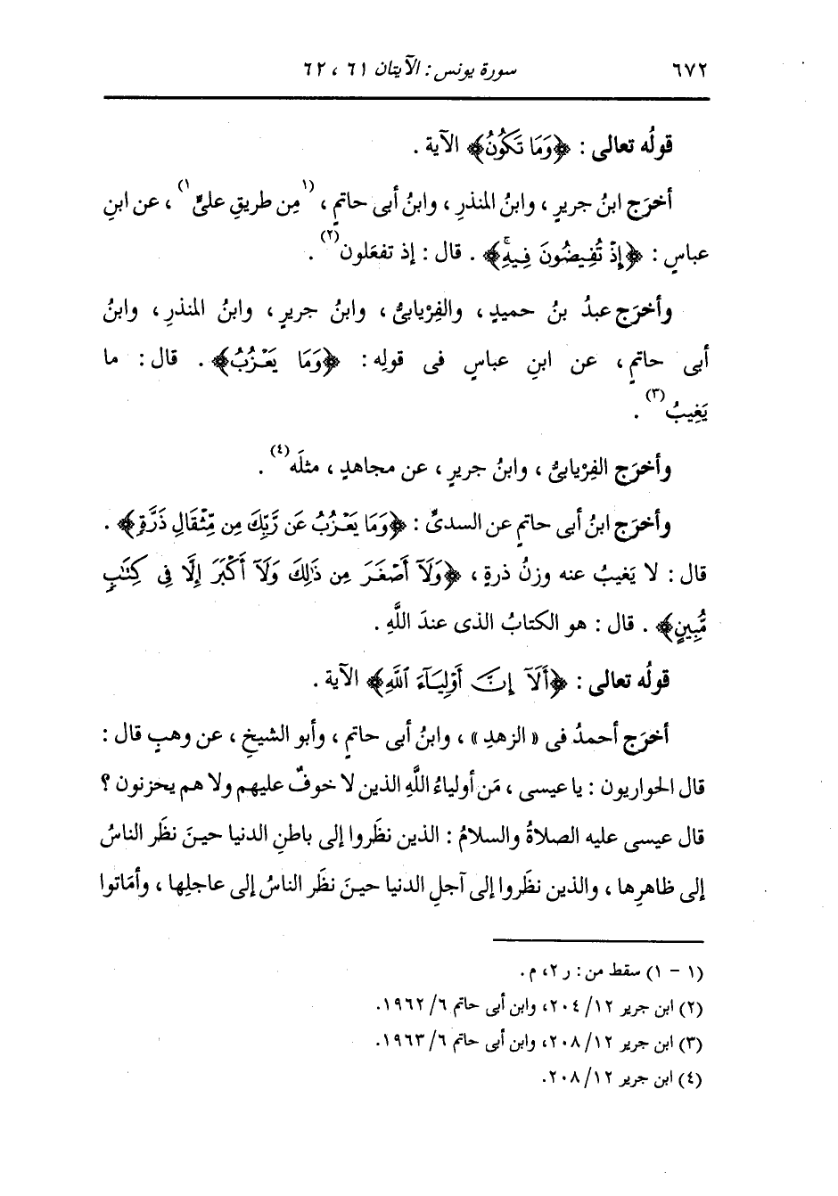 وأخرج ابن جرير ، وَابن أبي حاتم عن ابن زيد رضي الله عنه في قوله {ألا إن أولياء الله لا خوف عليهم ولا هم يحزنون} قيل : من هم يارب ؟ قال : (الذين أمنوا وكانوا يتقون)