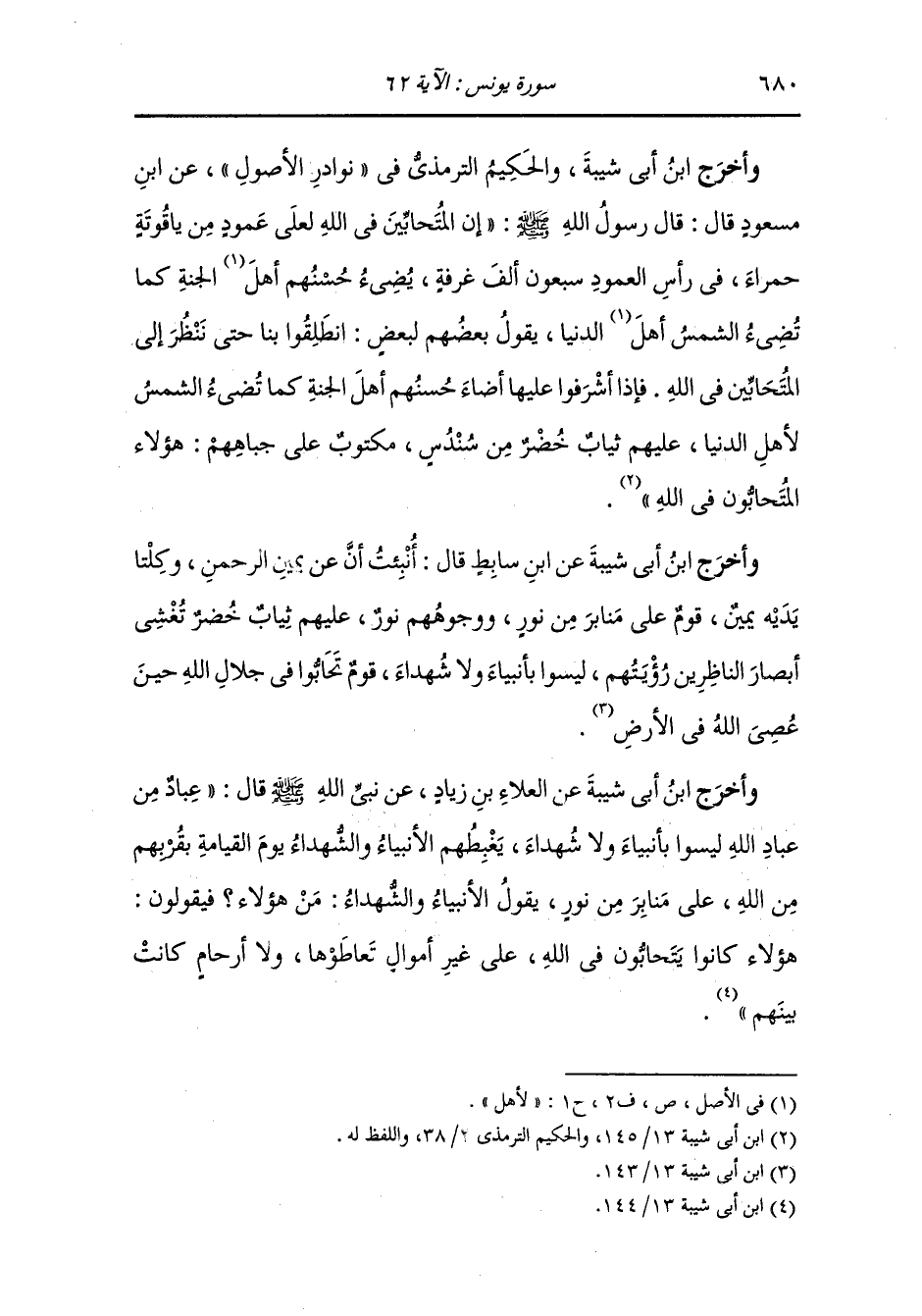 وأخرج أحمد عن أبي سعيد رضي الله عنه قال : قال رسول الله صلى الله عليه وسلم إن المتحابين لنرى غرفهم في الجنة كالكوكب الطالع الشرقي أو الغربي فيقال : من هؤلاء فيقال : المتحابون في الله تعالى.