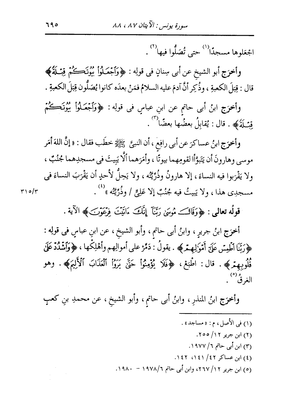 وأخرج أبو الشيخ عن القرظي رضي الله عنه في قوله {ربنا اطمس على أموالهم} قال : اجعل سكرهم حجارة.