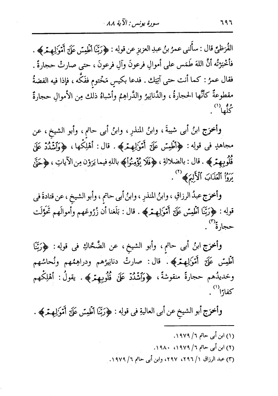 وأخرج ابن جرير عن ابن زيد رضي الله عنه قال : كان هرون عليه السلام يقول : آمين ، فقال الله {قد أجيبت دعوتكما} فصار التأمين دعوة صار شريكه فيها.