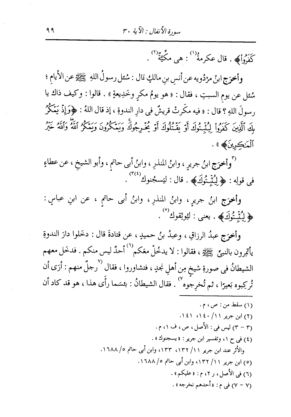 وأخرج ابن جرير وأبو الشيخ عن ابن جريج رضي الله عنه {وإذ يمكر بك الذين
