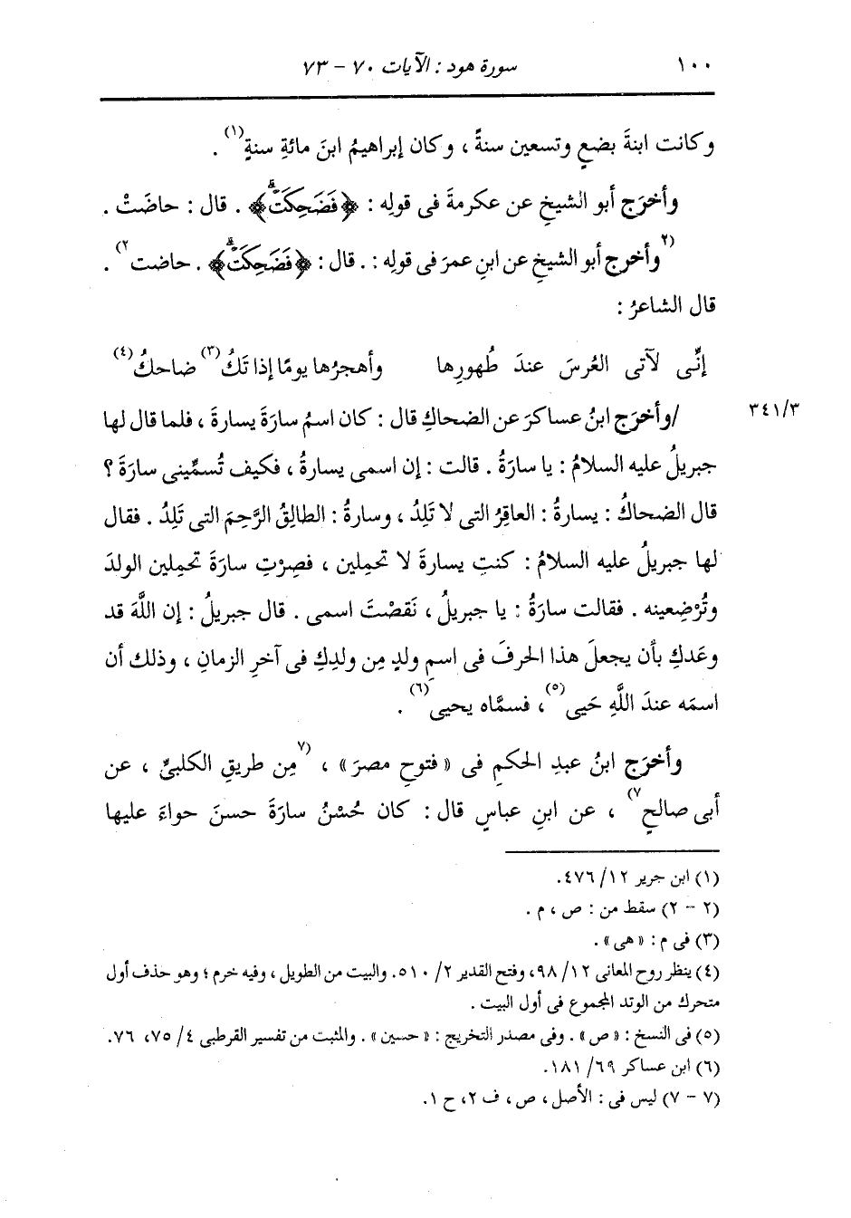 وكانت ابنة بضع وتسعين سنة وكان إبراهيم عليه السلام ابن مائة سنة.