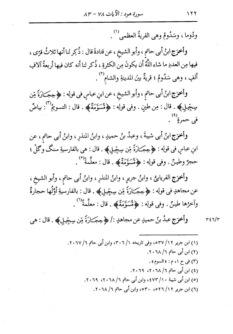 وأخرج الفريابي ، وَابن جَرِير ، وَابن المنذر ، وَابن أبي حاتم وأبو الشيخ عن مجاهد رضي الله عنه في قوله {حجارة من سجيل} قال : بالفارسية أولها حجارة وآخرها طين ، وفي قوله {مسومة} قال : معلمة.