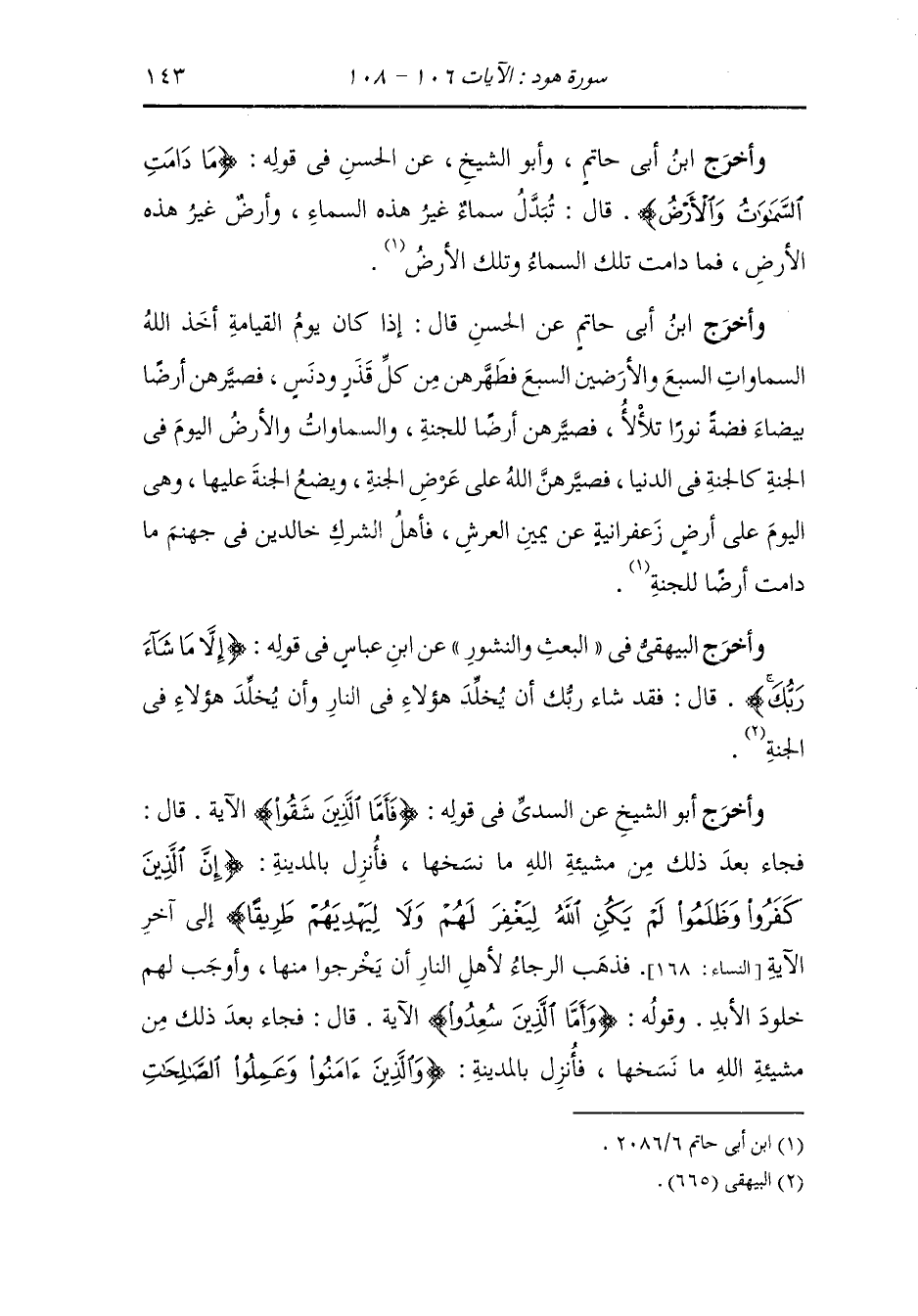وأخرج ابن أبي حاتم وأبو الشيخ عن الحسن رضي الله عنه في قوله {ما دامت السماوات والأرض} قال : تبدل سماء غير هذه السماء وأرض غير هذه الأرض فما دامت تلك السماء وتلك الأرض.