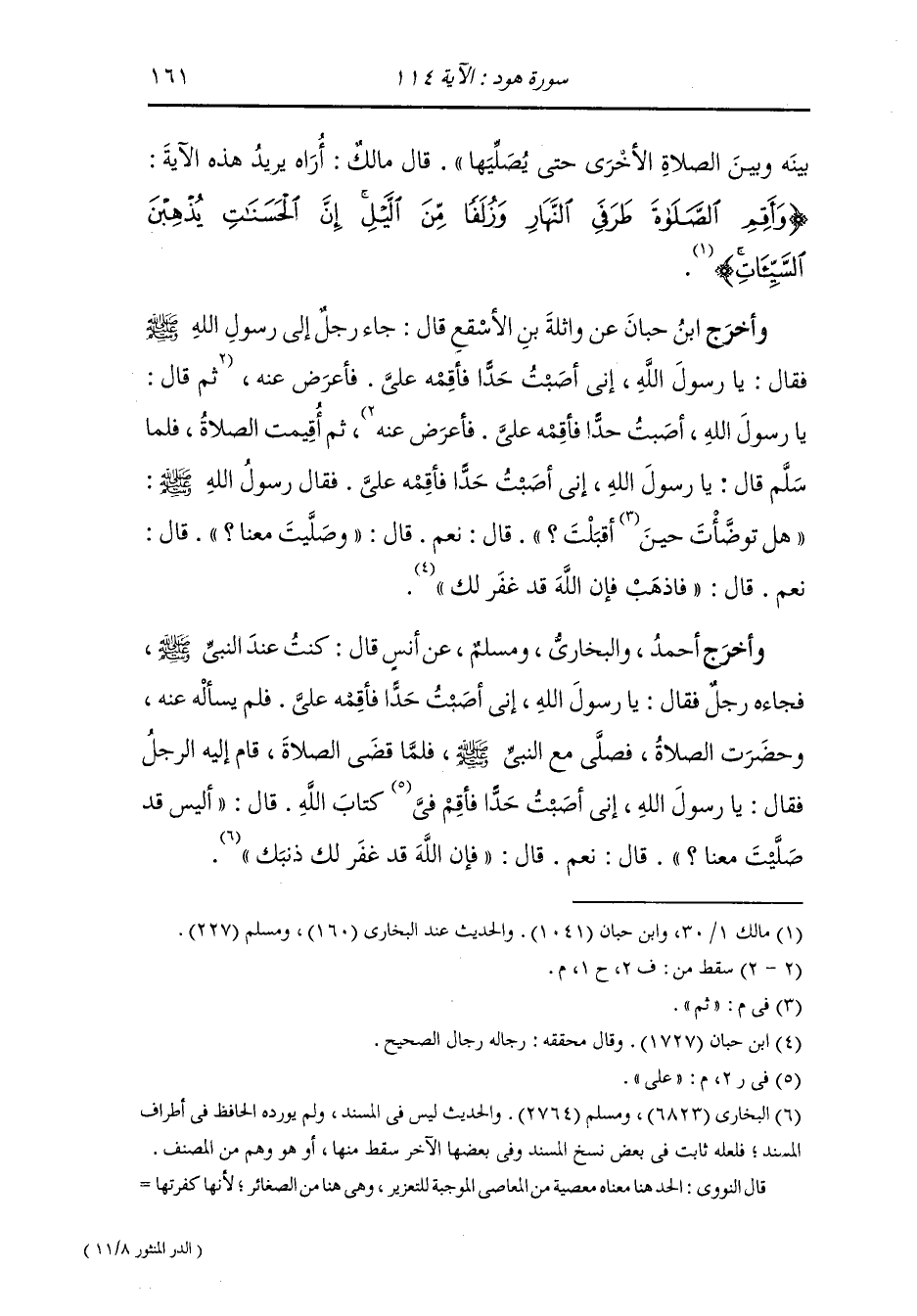وأخرج ابن حبان عن واثلة بن الأسقع قال : جاء رجل إلى رسول الله صلى الله عليه وسلم فقال : يا رسول الله إني أصبت حدا فأقمه علي ، فأعرض عنه ثم أقيمت الصلاة فلما سلم قال : يا رسول الله إني أصبت حدا فأقمه علي ، فقال رسول الله صلى الله عليه وسلم هل توضأ ثم أقبلت قال : نعم ، قال : وصليت معنا قال : نعم ، قال : فاذهب فإن الله قد غفر لك.