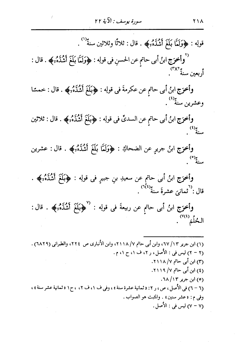 وأخرج ابن أبي حاتم عن سعيد بن جبير رضي الله عنه في قوله {بلغ أشده} قال : عشر سنين.