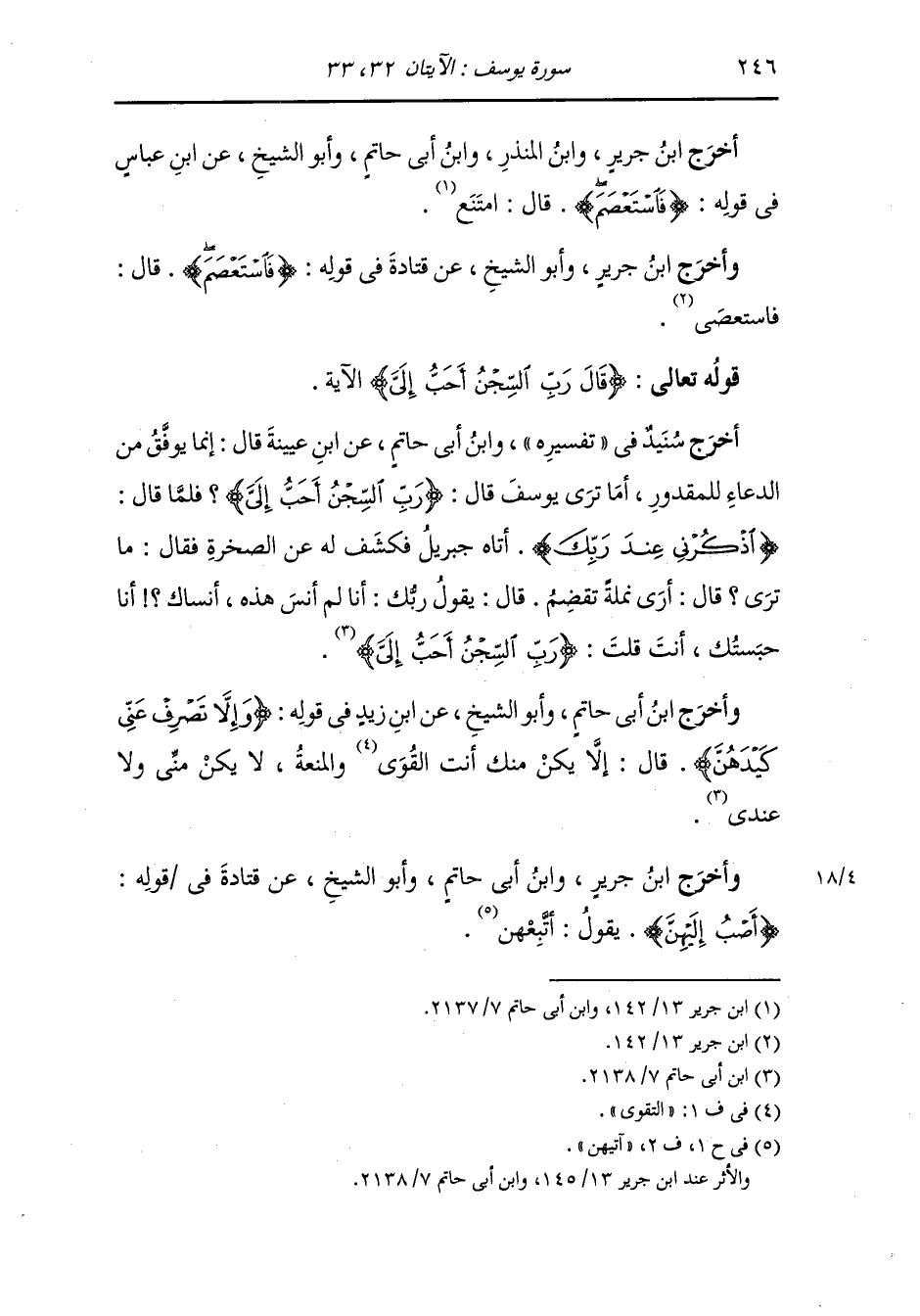 وأخرج ابن أبي حاتم وأبو الشيخ عن ابن زيد رضي الله عنه في قوله {وإلا تصرف عني كيدهن} قال : إن لا يكن منك أنت القوي والمنعة لا تكن مني ولا عندي.