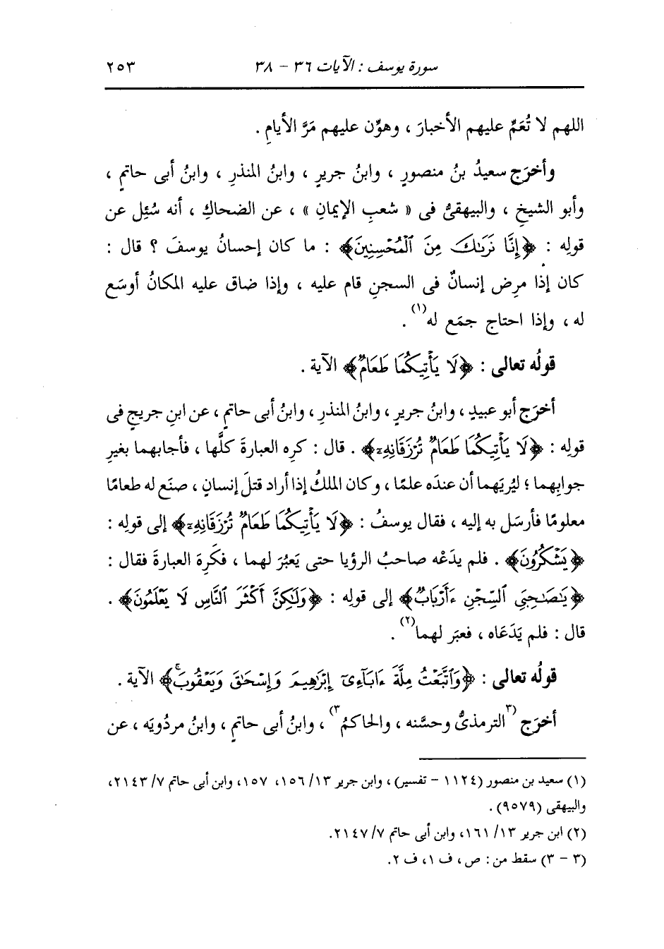 به إليه ، فقال يوسف عليه السلام {لا يأتيكما طعام ترزقانه} إلى قوله {تشكرون} فلم يدعه صاحب الرؤيا حتى يعبر لهما فكرة العبارة فقال {يا صاحبي السجن أأرباب} إلى قوله {ولكن أكثر الناس لا يعلمون} قال : فلم يدعاه فعبر لهما.