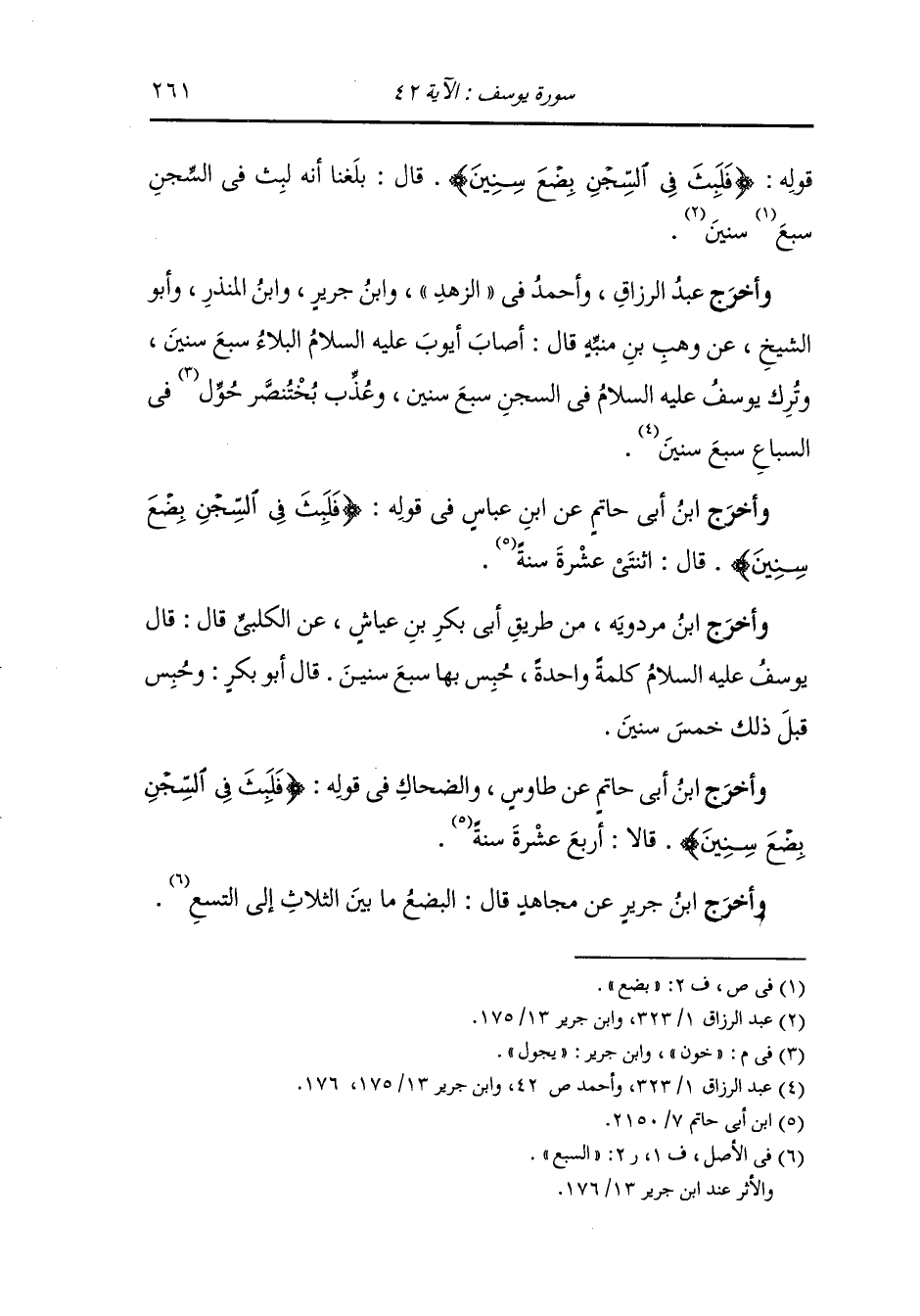 وأخرج ابن أبي حاتم ، عَن طاووس والضحاك في قوله {فلبث في السجن بضع سنين} قالا : أربع عشرة سنة.