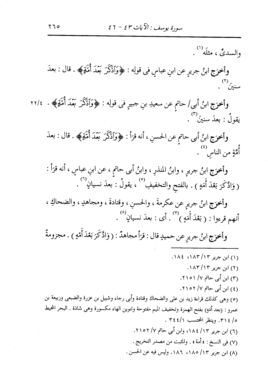 وأخرج ابن جرير عن ابن عباس - رضي الله عنهما - في قوله {وادكر بعد أمة} يقول : بعد سنين.