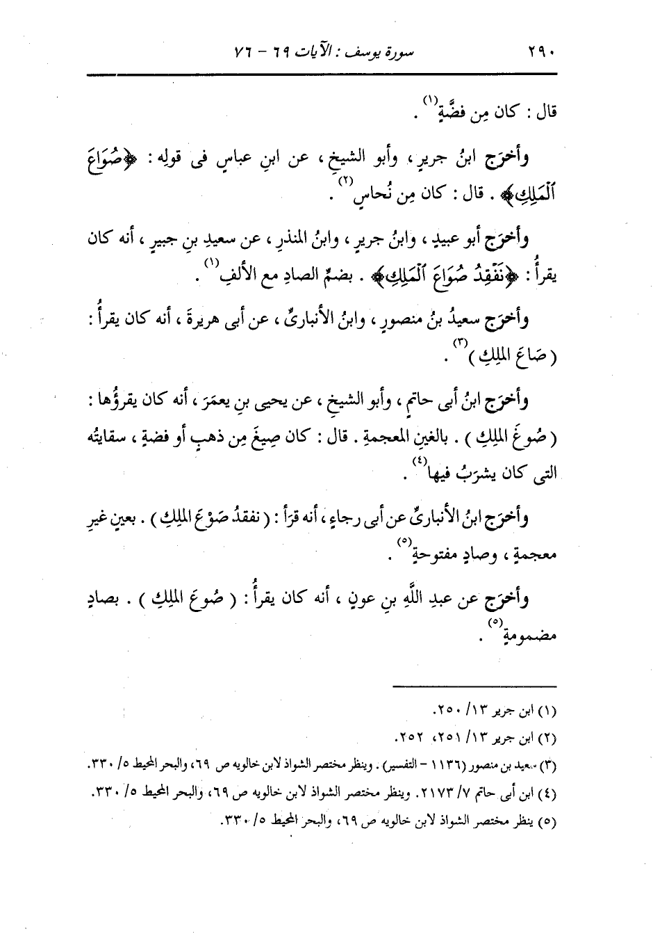 وأخرج عن عبد الله بن عون - رضي الله عنه - أنه كان يقرأ صوع الملك بصاد مضمومة