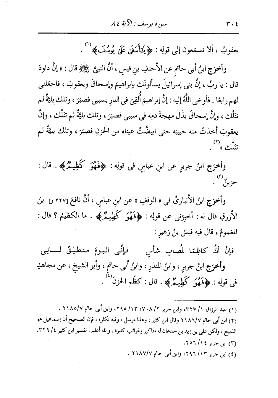 وأخرج ابن جرير عن ابن عباس - رضي الله عنهما - في قوله {فهو كظيم} قال : حزين.
