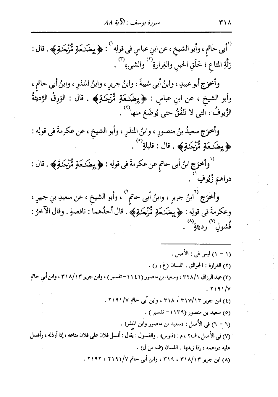وأخرج ابن جرير ، وَابن أبي حاتم وأبو الشيخ عن سعيد بن جبير وعكرمة - رضي الله عنهما - في قوله {ببضاعة مزجاة} قال أحدهما : ناقصة ، وقال الآخر : فلوس رديئة